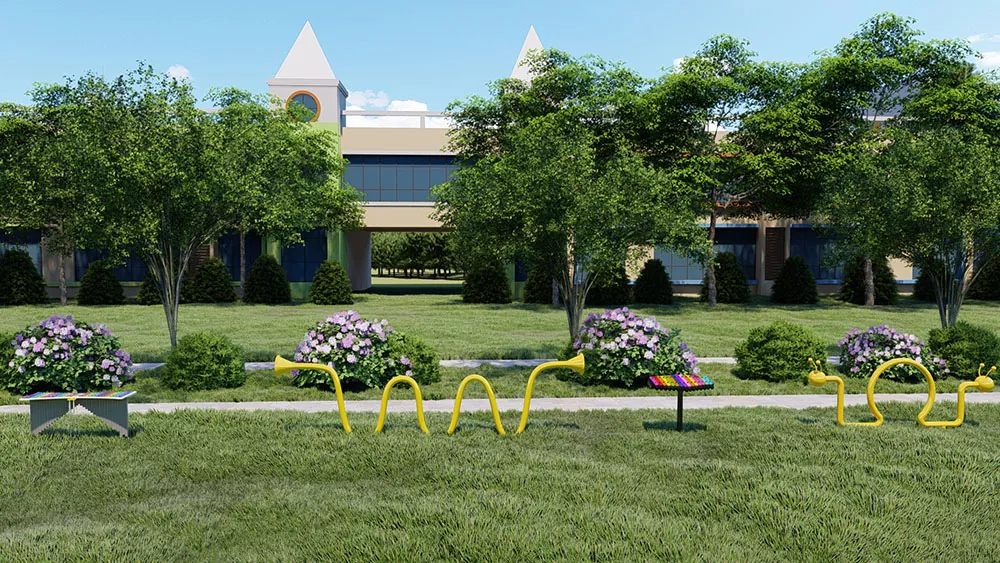 Երաժշտական ​​պատի տախտակը `հարվածային գործիքներով, դասական արտադրանք է` Հանկի կողմից: Այն ամբողջովին դեղին գույն է, երկու մրջյուն ձեւավորված դեղին ձայնային խողովակներ երեխաների համար ազատորեն խաղալու համար: