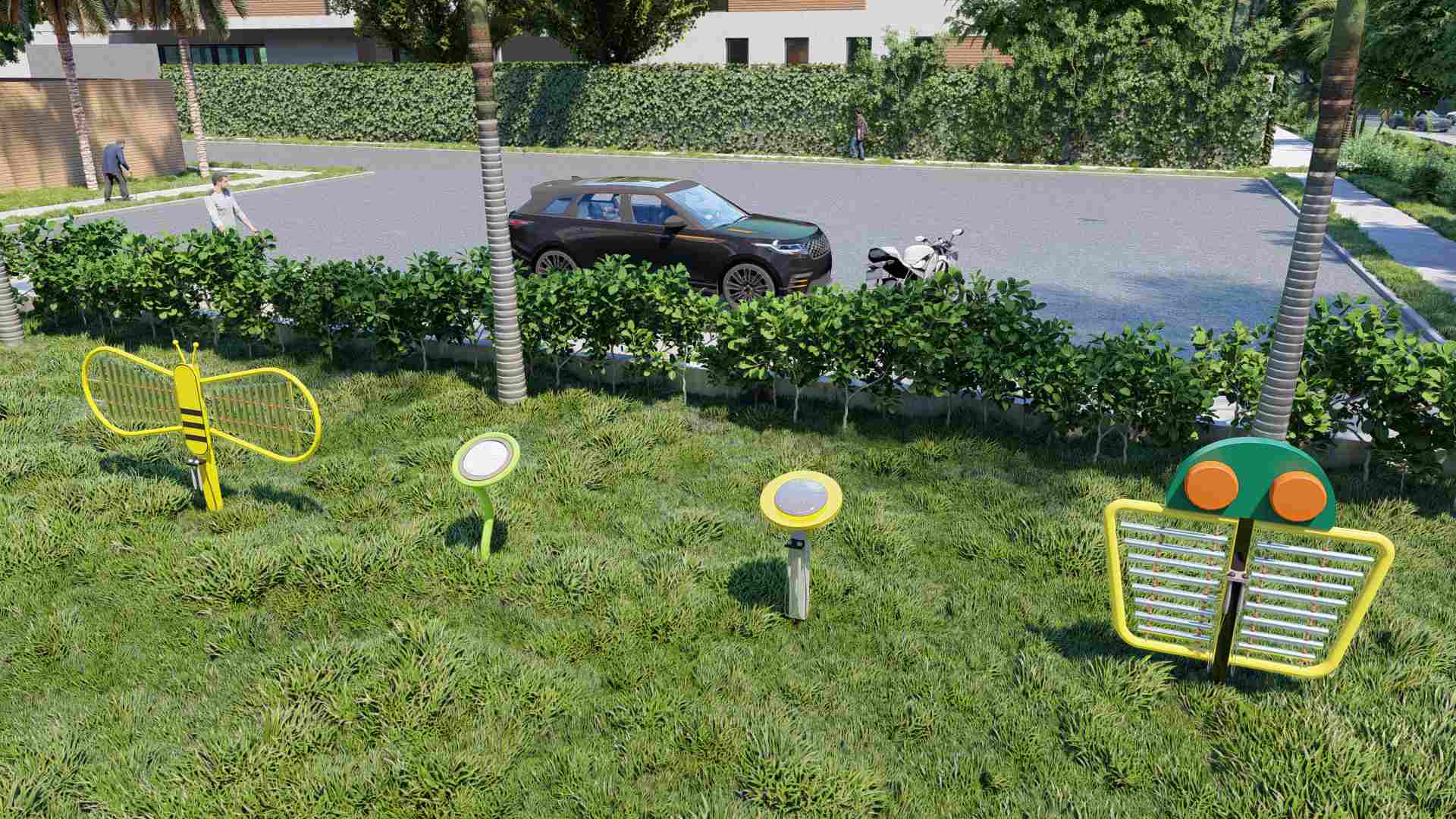 Հեռվից այն կարծես դրսում ծաղկող «արևածաղկի» լինի։ Վառ դեղին վերին սկավառակը աշխույժ է և գրավիչ, ինչպես երեխաների աչքերում ամենավառ գույնը. Փայտե սյուներն ունեն բնական և տաք հյուսվածք՝ ներդաշնակորեն միաձուլվելով արտաքին միջավայրին: Առավել ուշադիրն այն է, որ սարքավորված հարվածային մուրճը հիանալի ձևավորված է, իսկ կախովի մասը հեշտ է օգտագործել, ինչը թույլ է տալիս յուրաքանչյուր երեխայի, ով ցանկանում է երաժշտություն ուսումնասիրել, հեշտությամբ մեկնել երաժշտական ​​ճանապարհորդության: Անկախ նրանից, թե դա համայնքային զբոսայգիներ են, կամպուսի խաղահրապարակներ, թե մշակութային և զբոսաշրջային թաղամասեր, այս դինամիկ գույներն ու յուրահատուկ ձևերը կարող են անմիջապես դառնալ բացօթյա տարածքների աչք գրավող կիզակետը՝ արթնացնելով մարդկանց հետաքրքրությունն ու երաժշտության կարոտը: